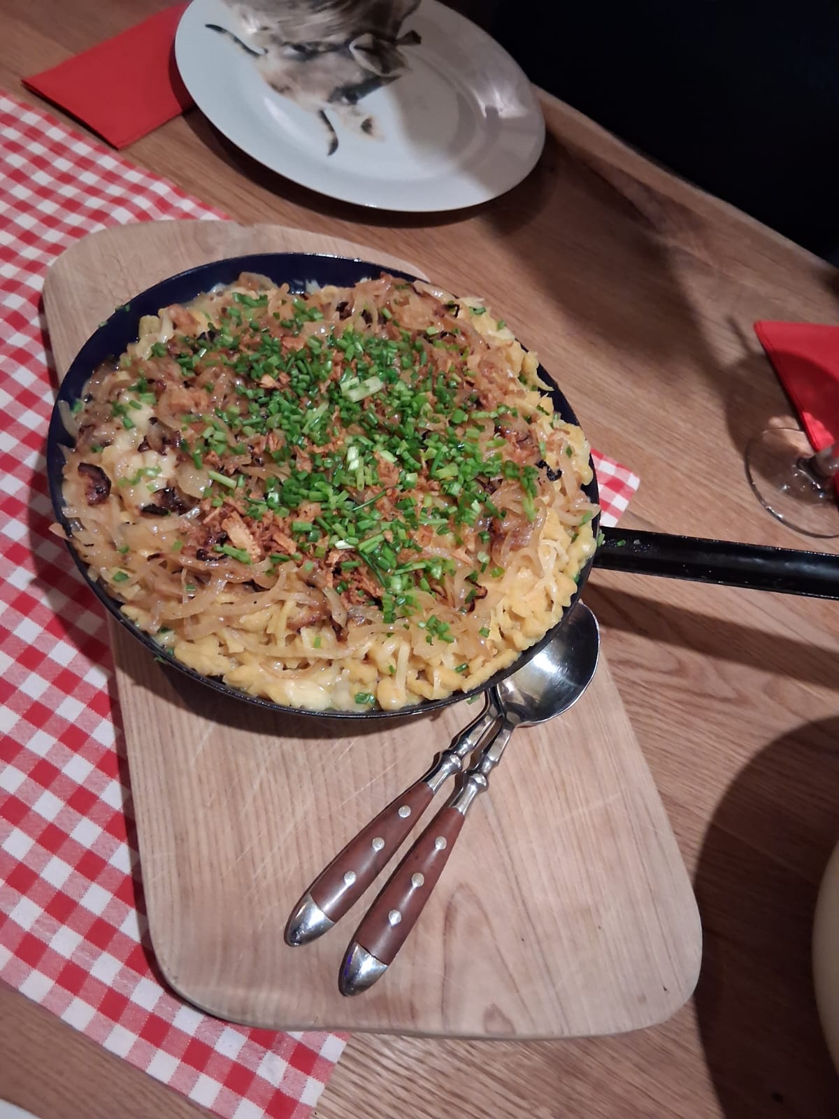 Was für eine Gaudi, die Mitarbeiter der „glücklichen Kuh“ in Schlat gaben sich große Mühe uns die Feinheiten des Käsespätzle-Kochens beizubringen, inkl. Käseverkostung.